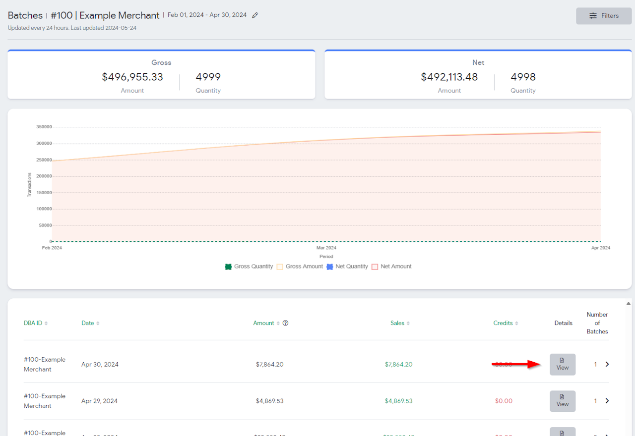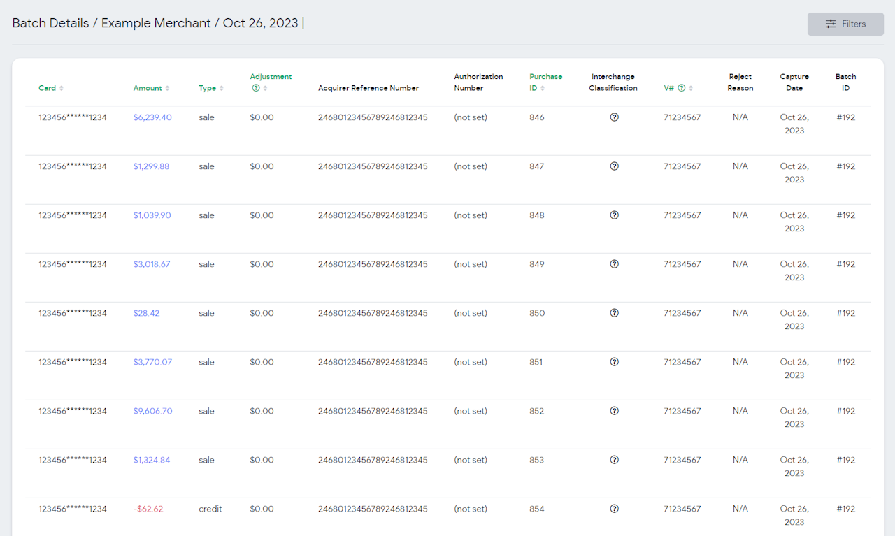 Batches enables you to have quick access to your card batch data for your MIDs.